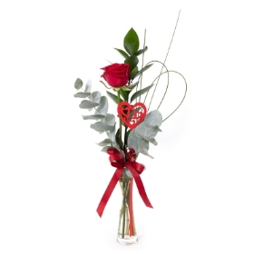 Leave a lasting impression with this single red rose, presented in a glass vase. Handmade & hand-delivered to the one you treasure.
